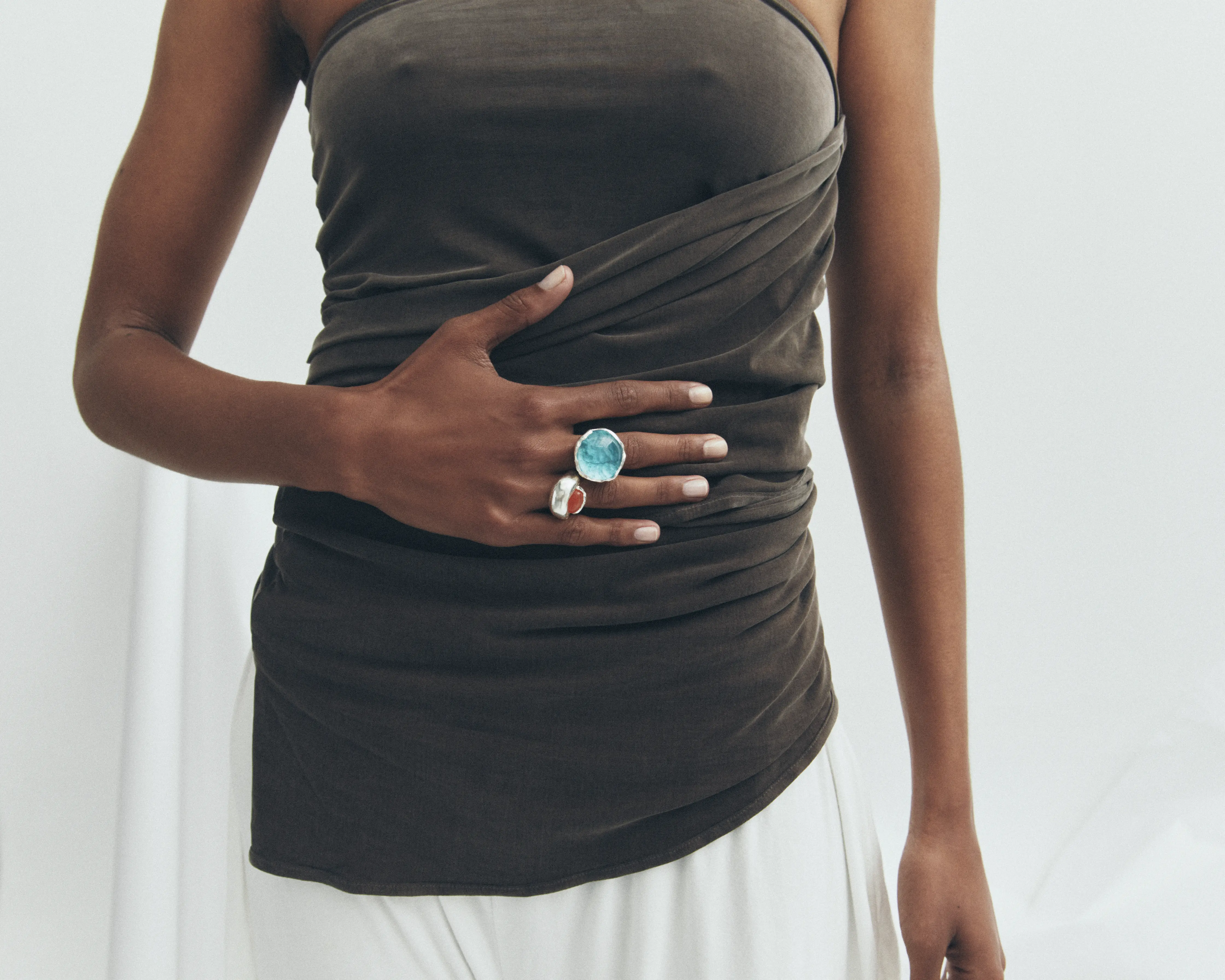 Atolón Blue, handmade recycled 925 sterling silver ring with Aqua glass stone.