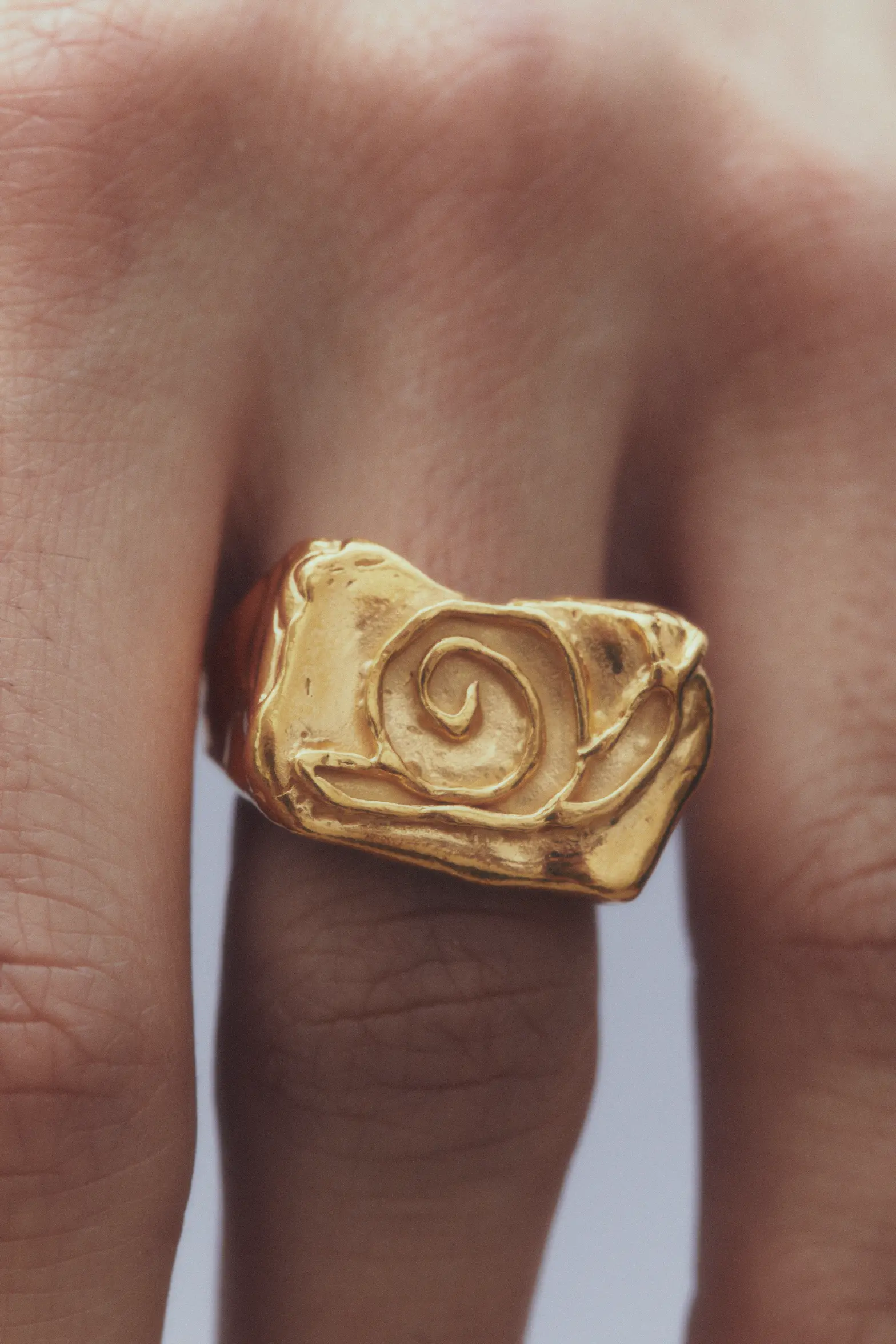 Caracol, handmade gold plated recycled 925 sterling silver ring.