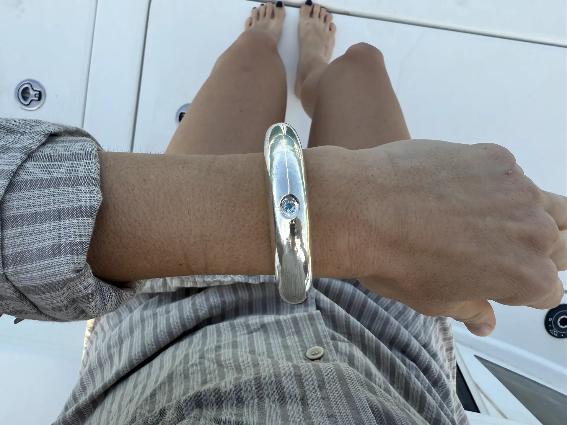 Delfina, handmade recycled 925 sterling silver bracelet with Blue Cubic Zirconia stone.