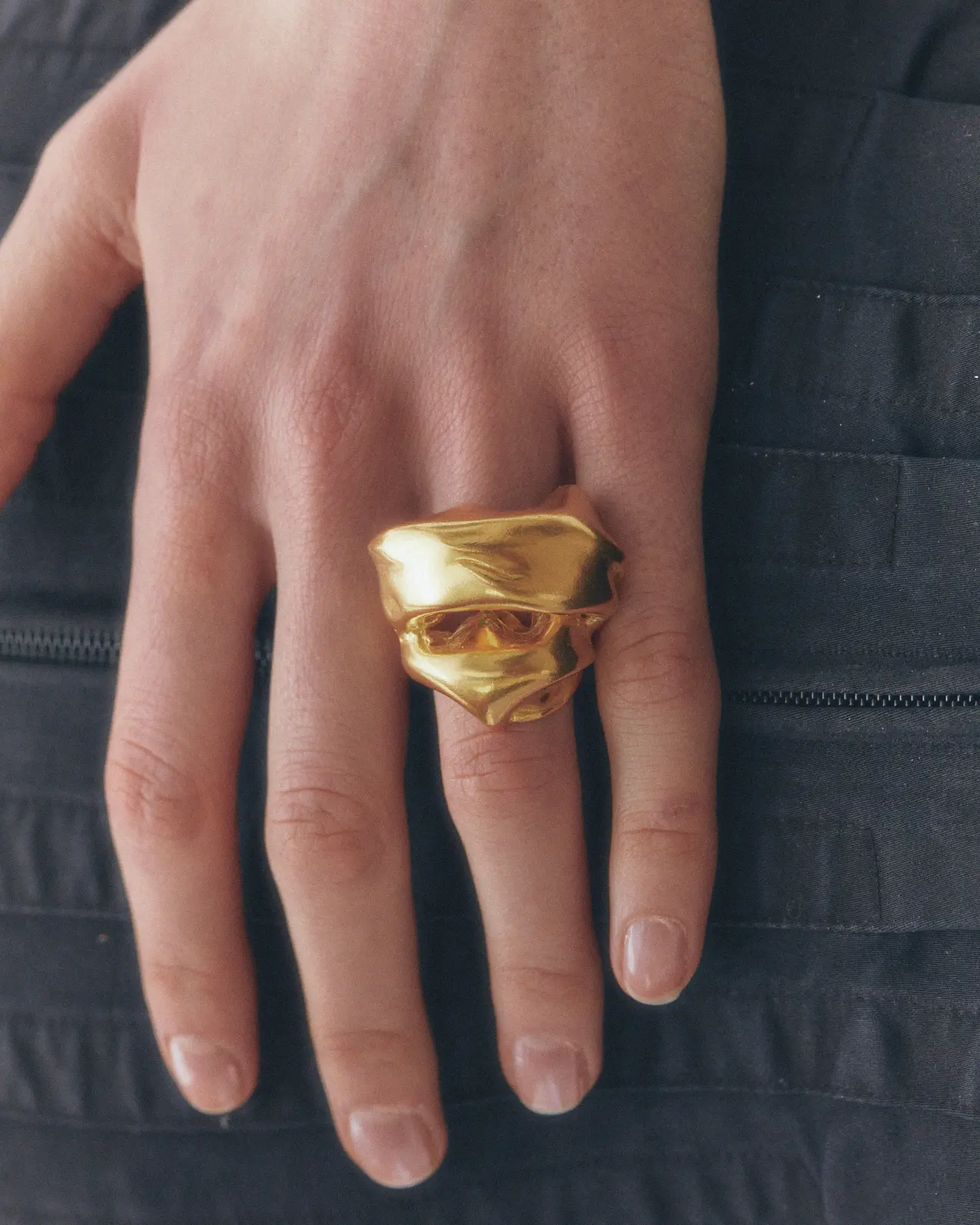 Malva, handmade gold plated recycled 925 sterling silver ring.
