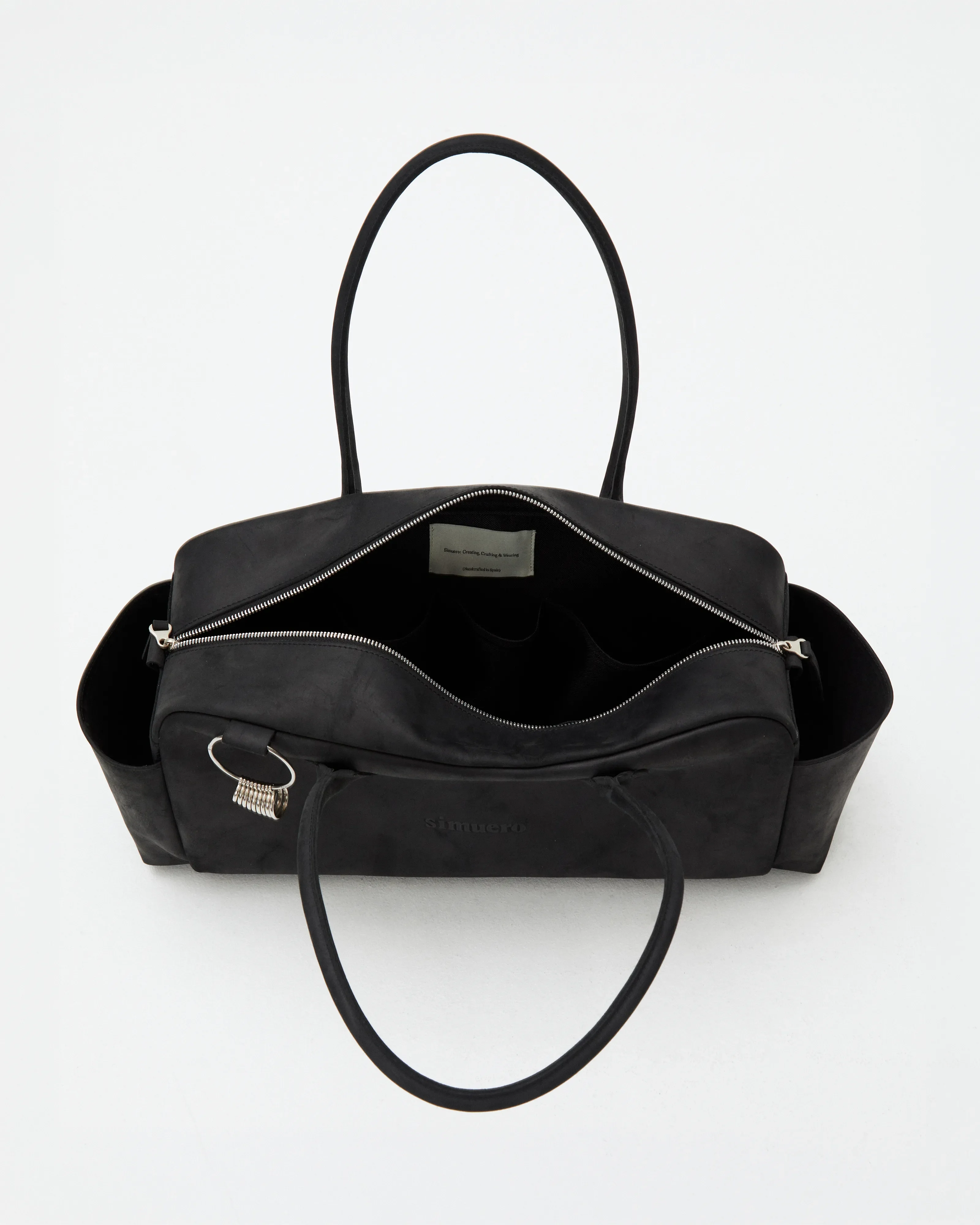 Tool Bag Black, a handcrafted leather bag made from greased bovine leather, responsibly sourced, tanned and produced in Spain and Portugal by specialized ateliers. Designed for everyday use and made to age beautifully with time.