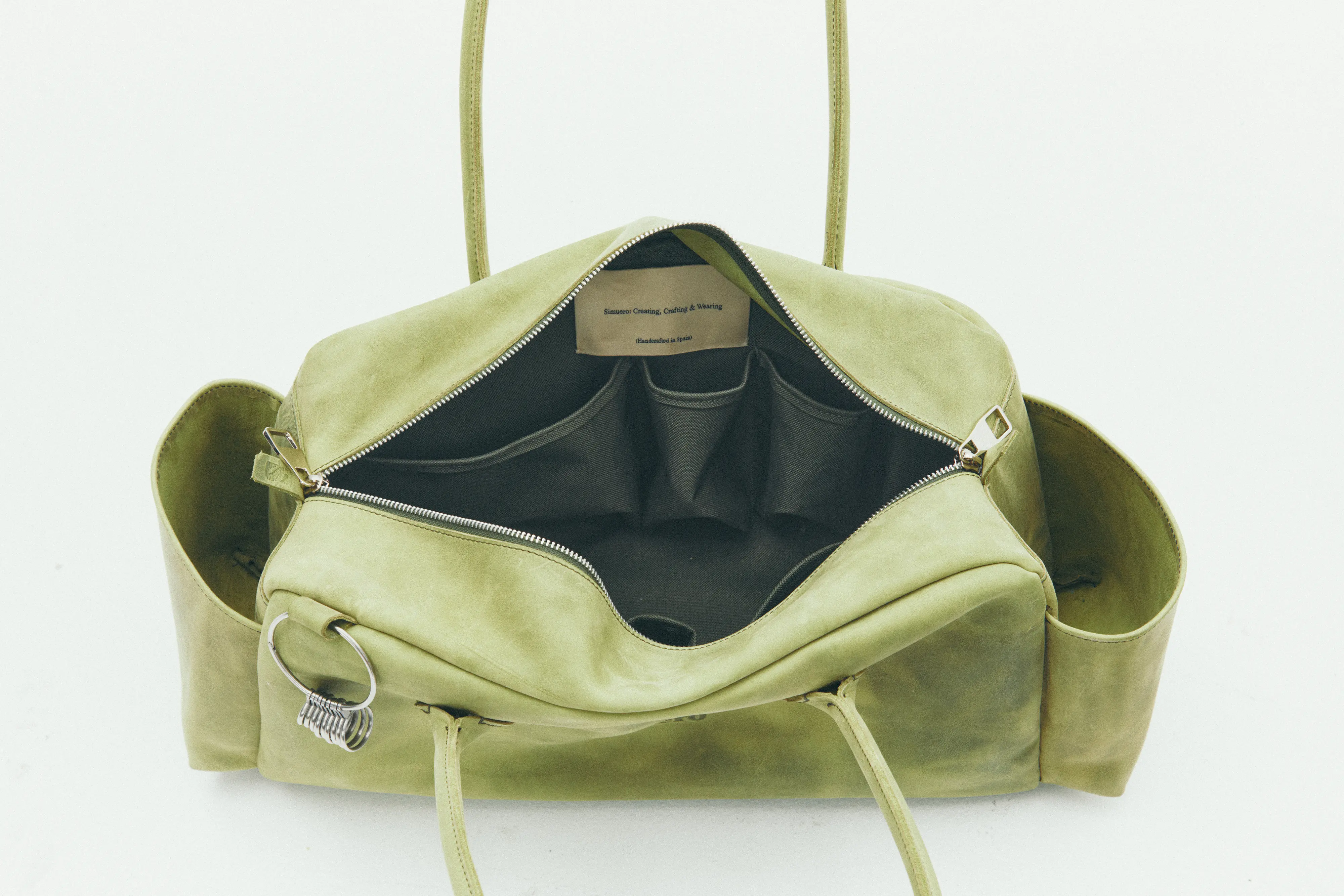 Tool Bag Green, handmade leather bag crafted from greased bovine leather, responsibly sourced and tanned in Spain and Portugal, and produced locally with specialized ateliers in Valencia and Alicante. Made for daily life. Meant for time.
